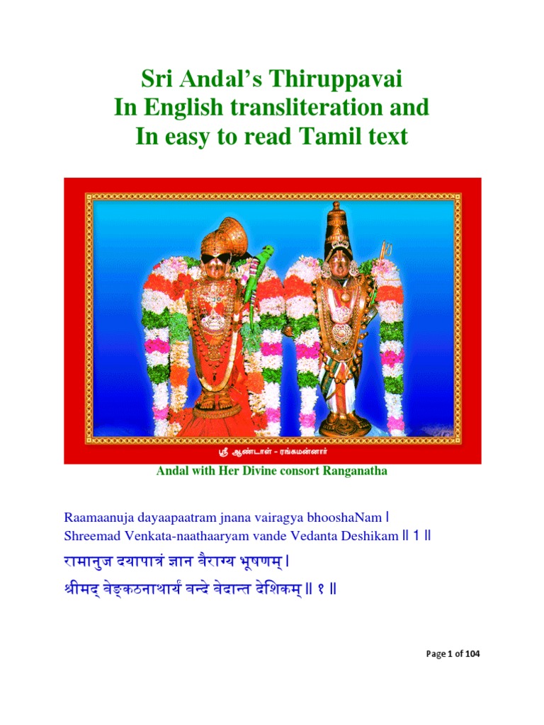 Andal Thiruppavai Lyrics In Tamil Pdf Xilusomega - Suprabhatam is a collection of hymns or verses recited early morning to awaken the deity in hinduism.